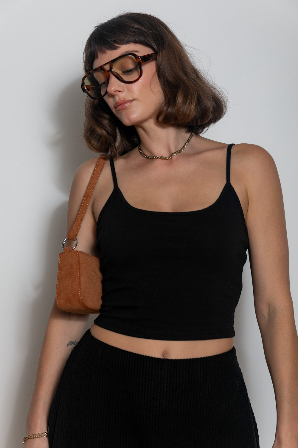 Model wearing size small in the Feel it Out Crop Top. Shelby is 5'7" with 33” Bust, 25” Waist and 36” Hips.