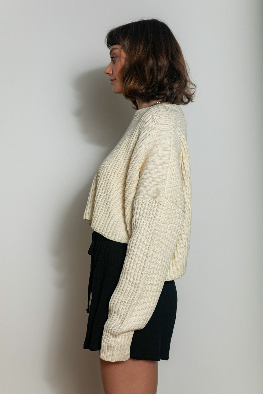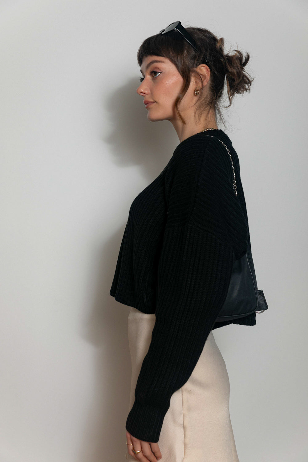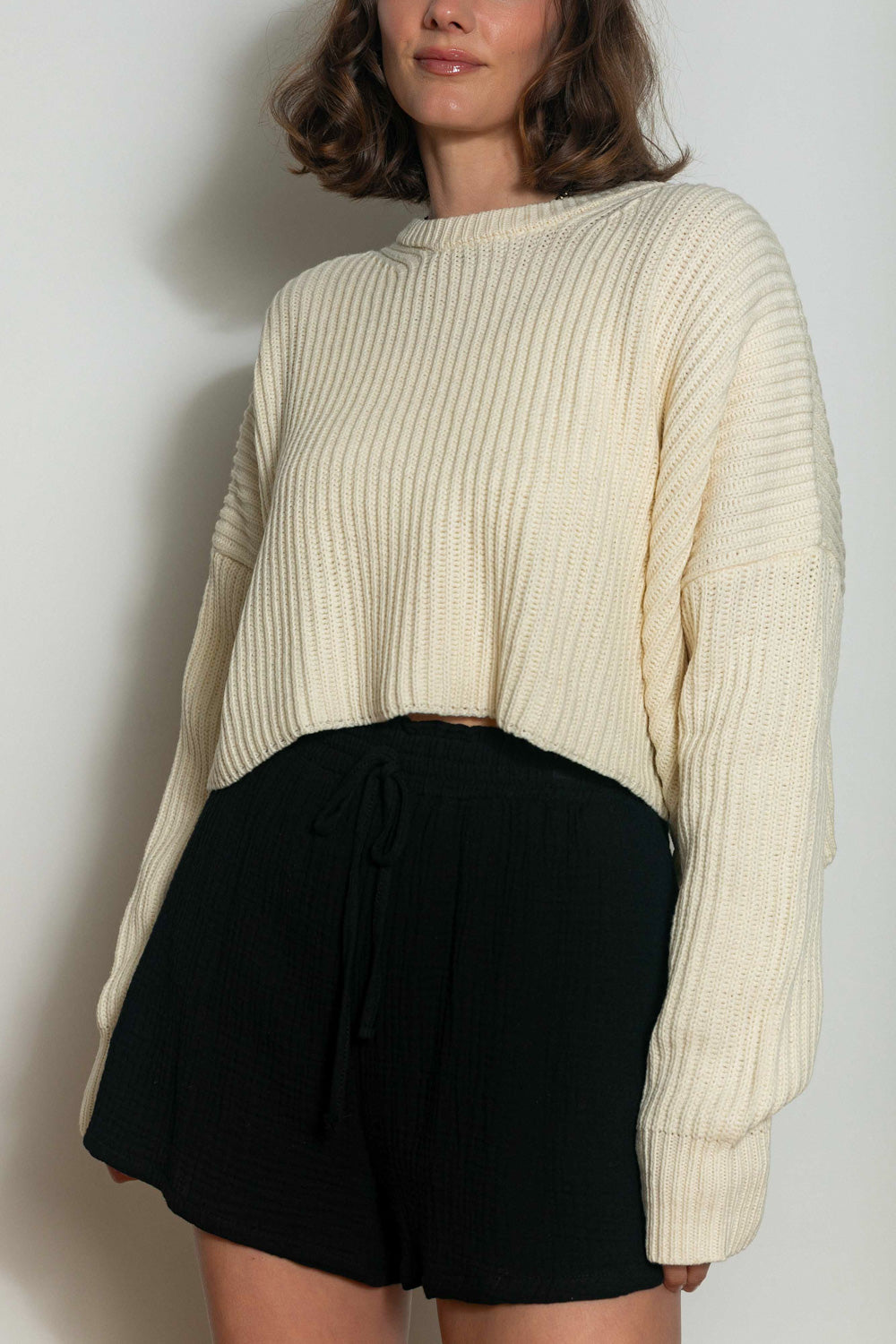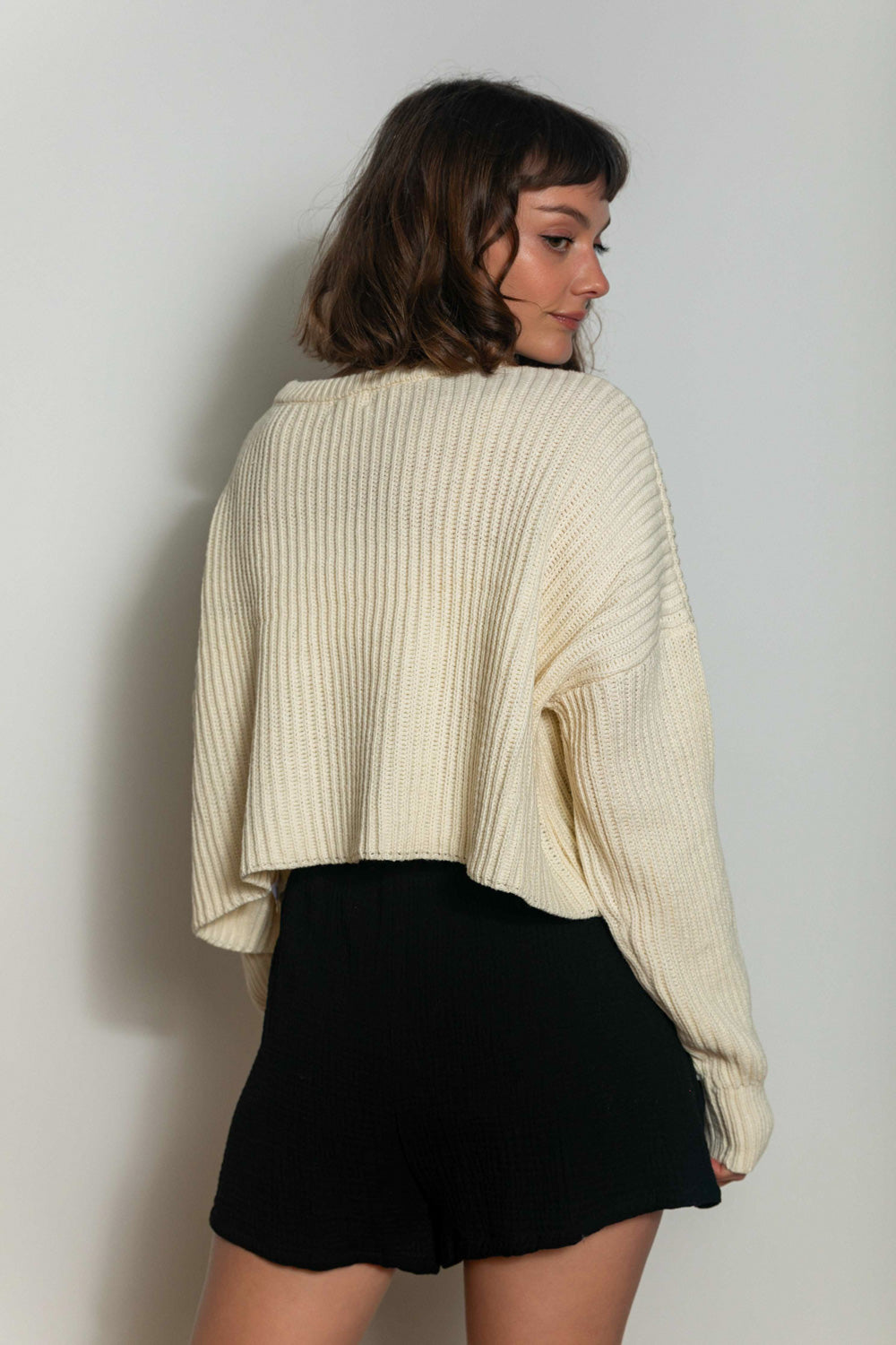 Model wearing size small in the Feels Familiar Sweater. Shelby is 5'7" with 33” Bust, 25” Waist and 36” Hips.
