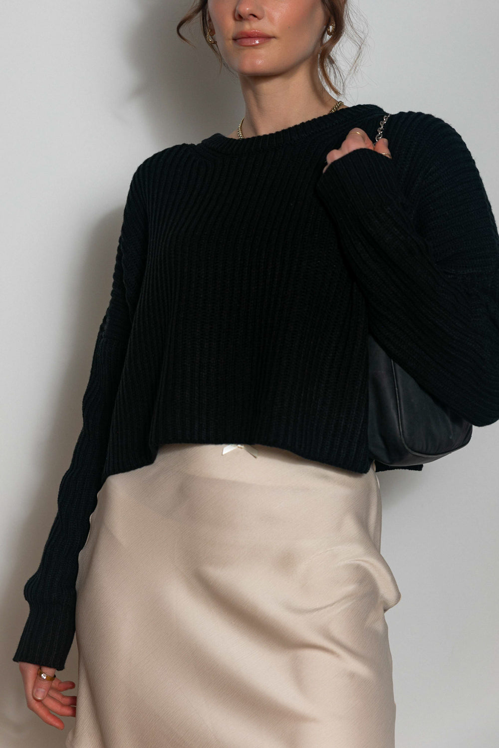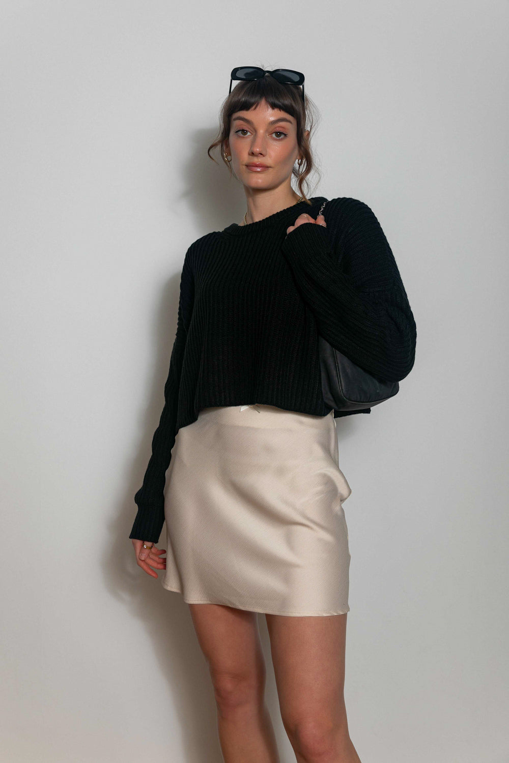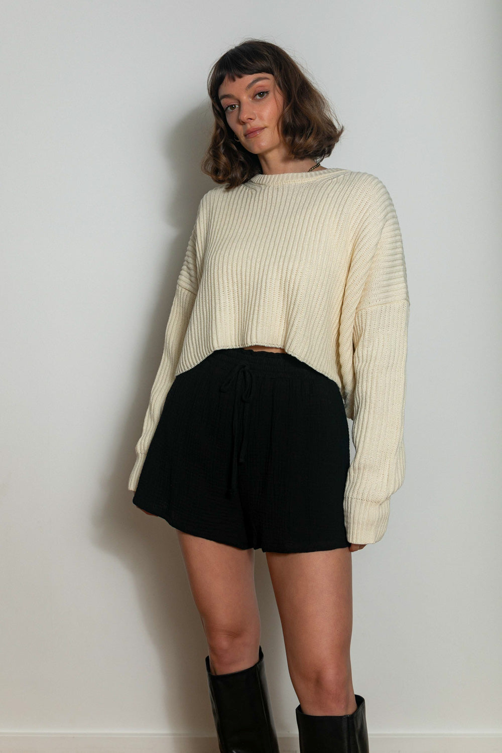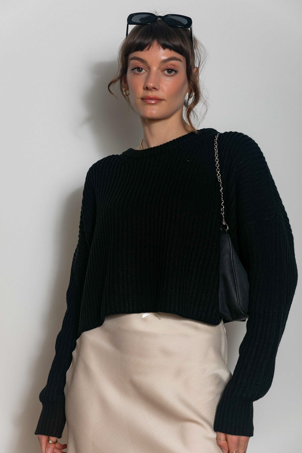 Model wearing size small in the Feels Familiar Sweater. Shelby is 5'7" with 33” Bust, 25” Waist and 36” Hips.