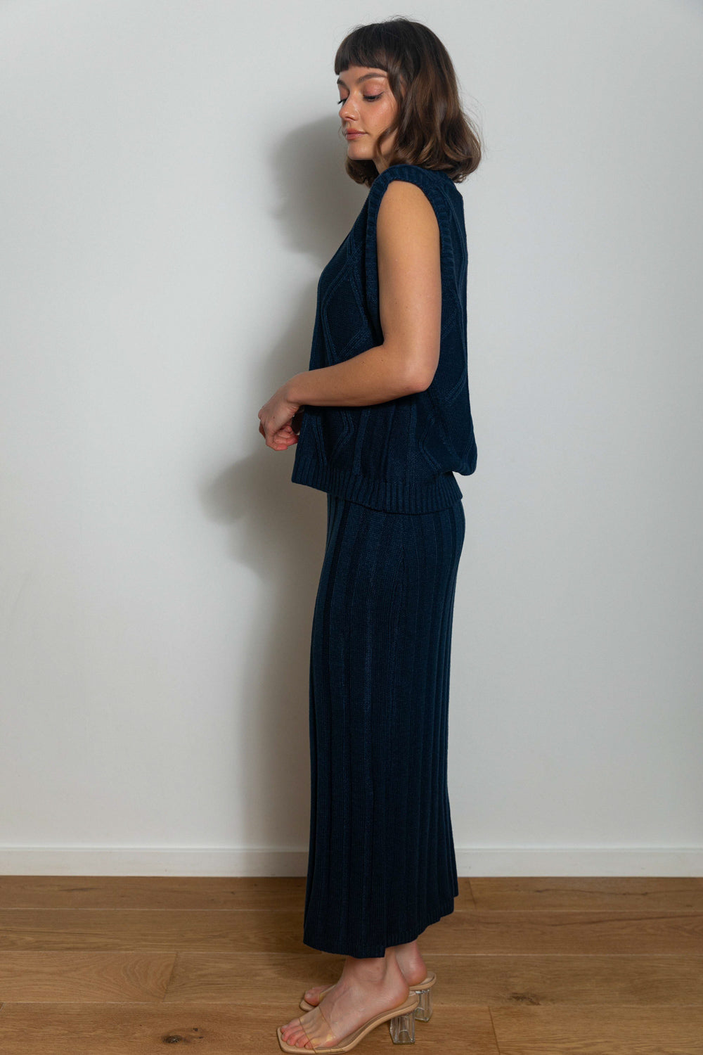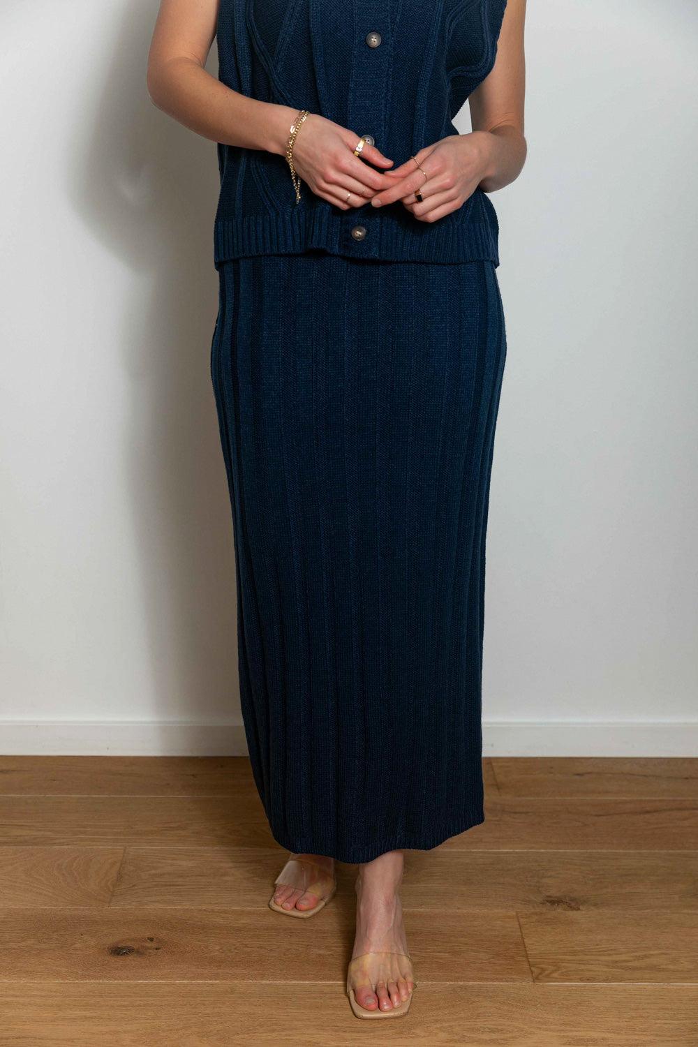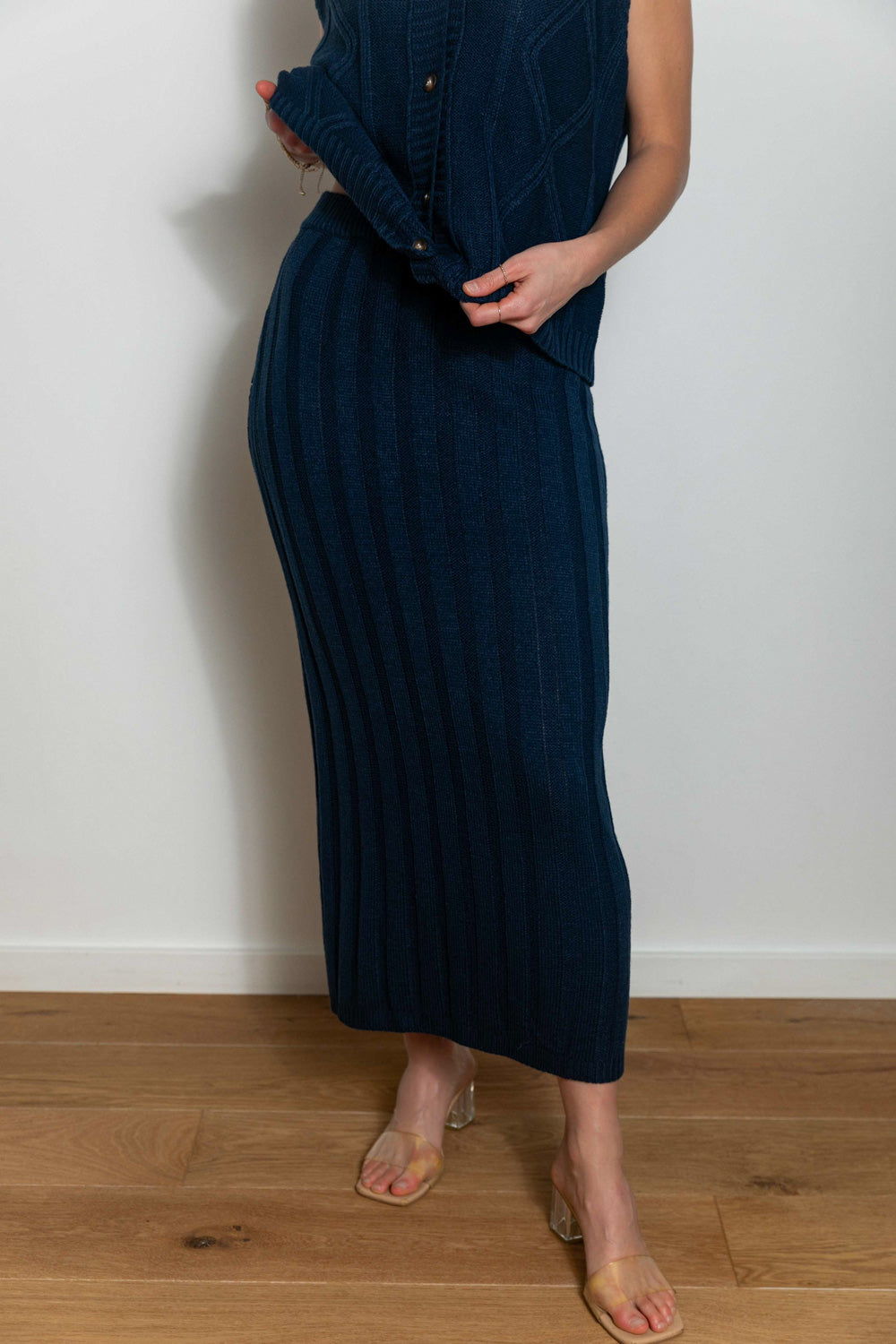 Model wearing size small in the Set on It Sweater Skirt. Shelby is 5'7" with 33” Bust, 25” Waist and 36” Hips.