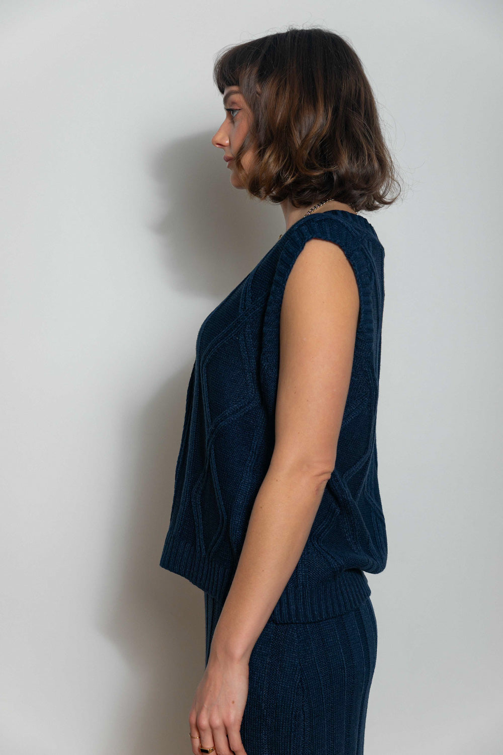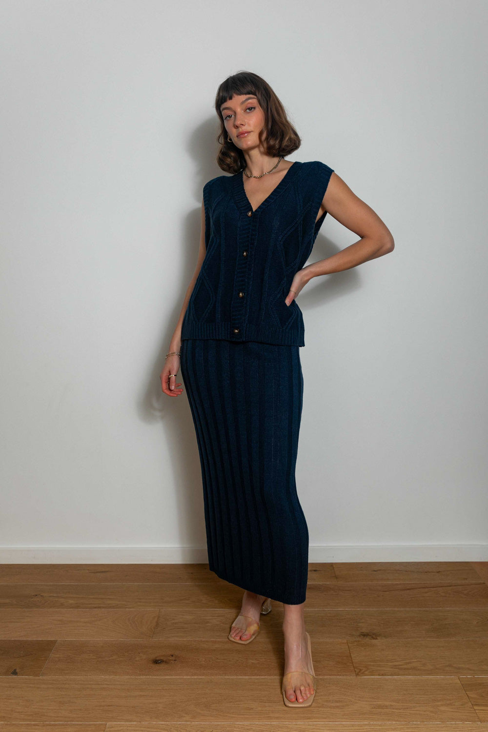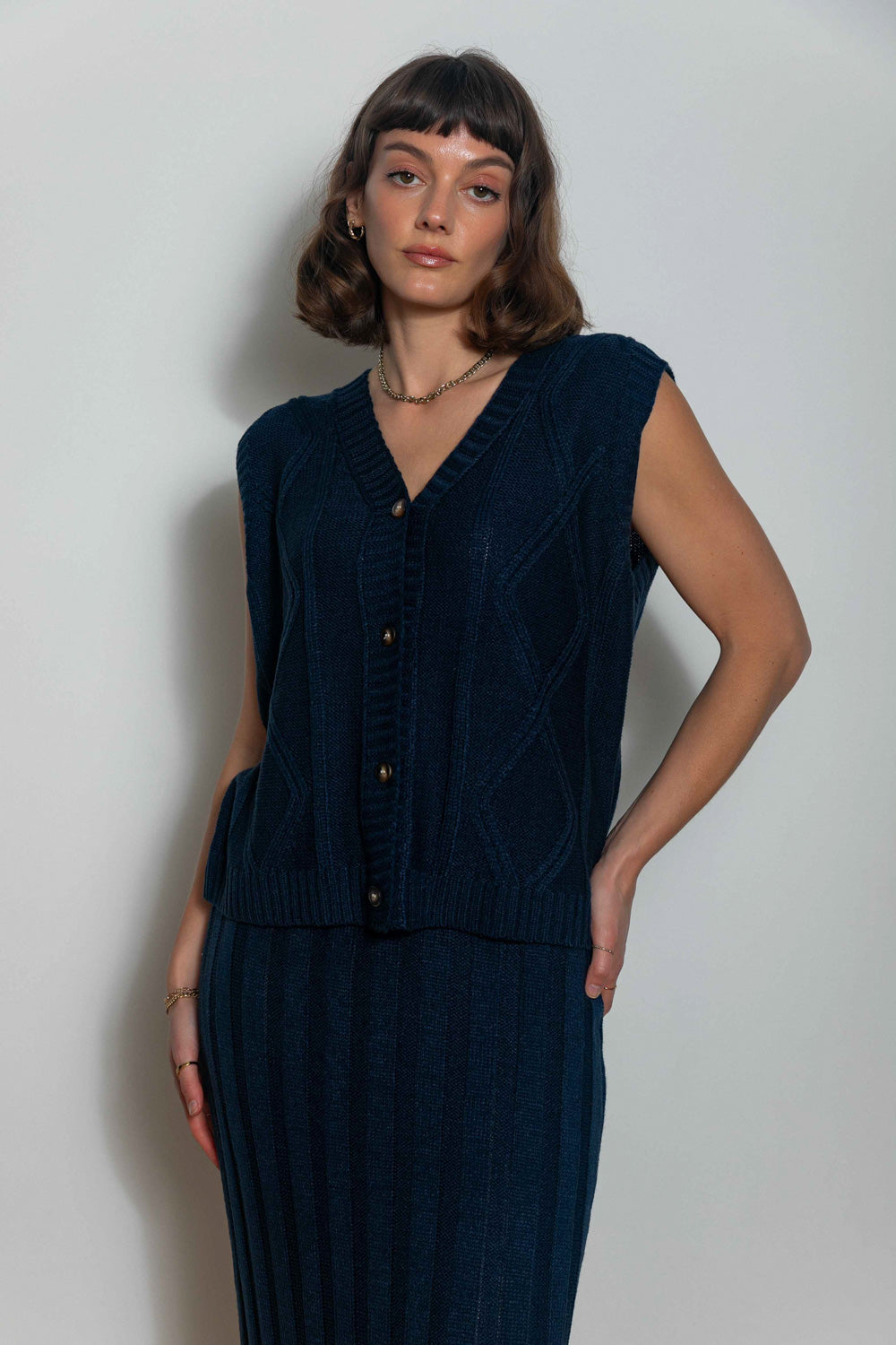 Model wearing size small in the Set on It Sweater Vest. Shelby is 5'7" with 33” Bust, 25” Waist and 36” Hips.