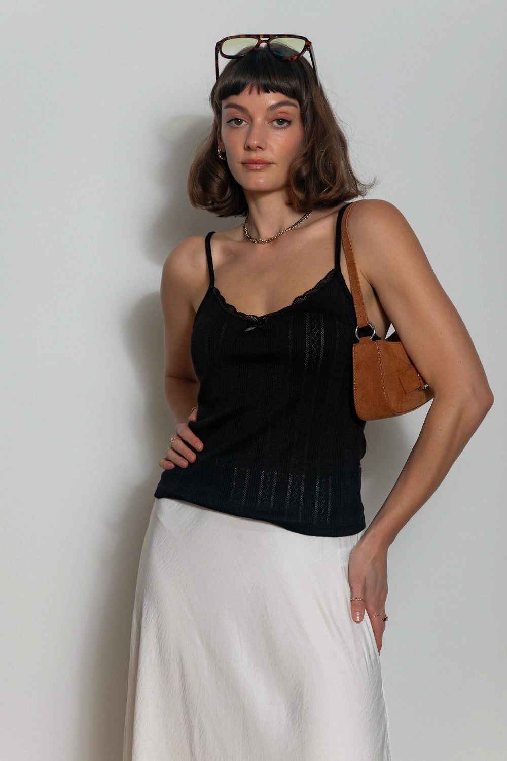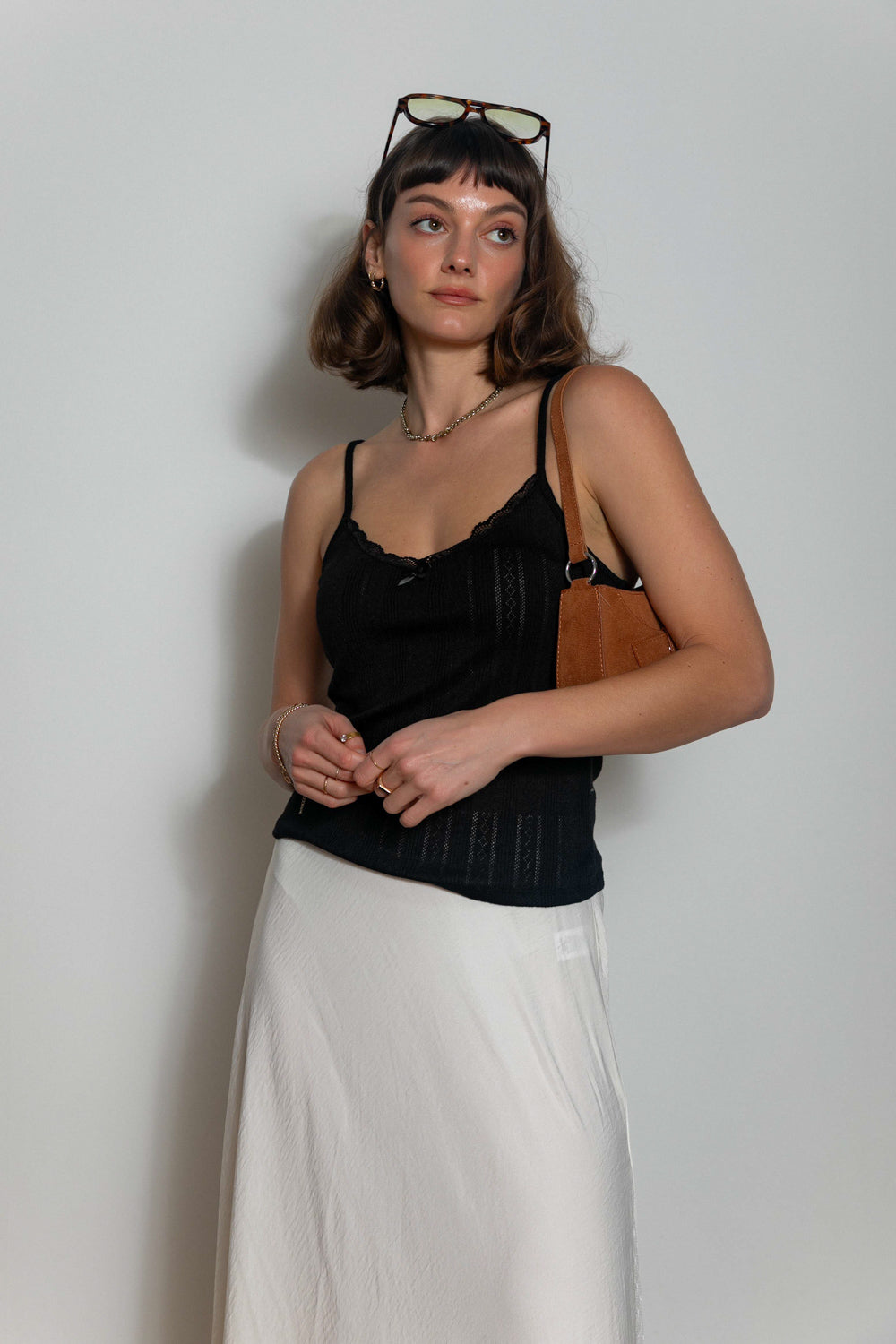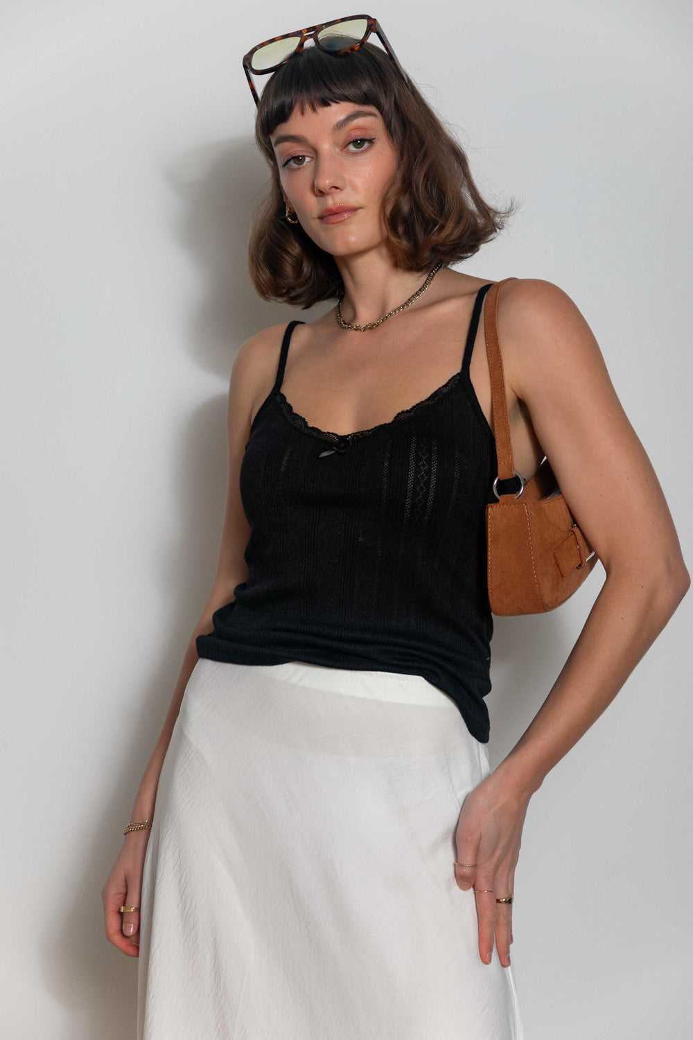 The Take a Piece of Me Tank is the cute take your wardrobe is missing! This super sweet, pointelle tank is the perfect addition to any outfit and is comfy enough to sleep in! We love this for a cute and casual outfit with the Away You Went Shorts. It's also the perfect everyday tank paired with the Kept it Cool Jean and easy to dress up with the We Belong Together Maxi Skirt.