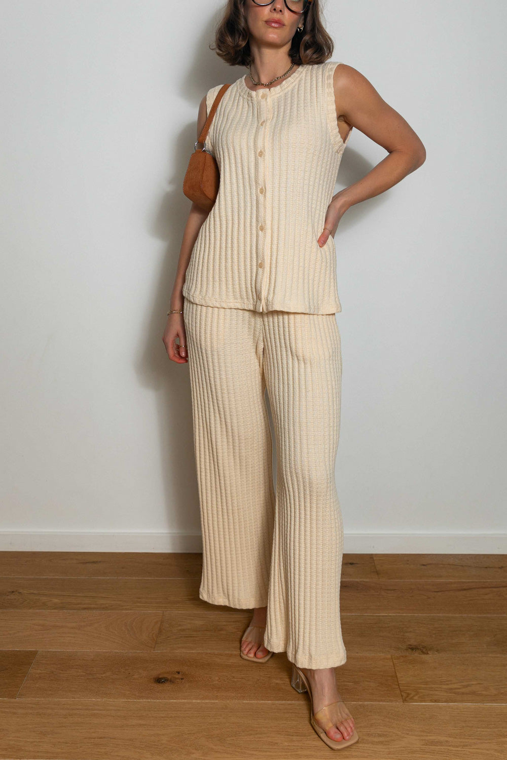 Model wearing size small in the Took it Easy Pants. Shelby is 5'7" with 33” Bust, 25” Waist and 36” Hips.