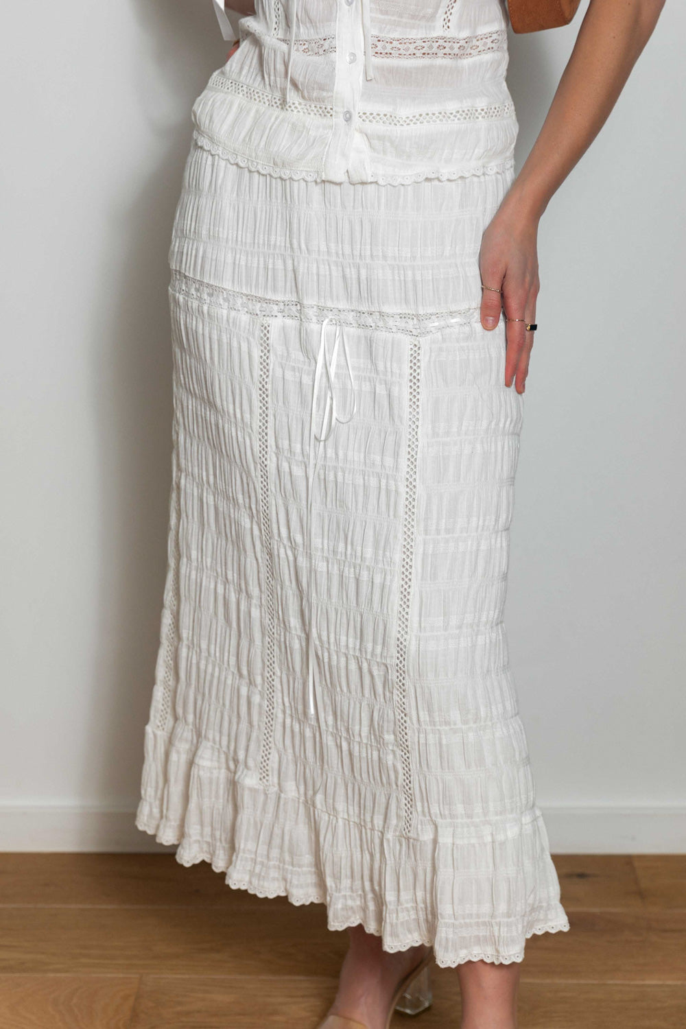 Model wearing size small in the Watch Me Fall in Love Maxi Skirt. Shelby is 5'7" with 33” Bust, 25” Waist and 36” Hips.